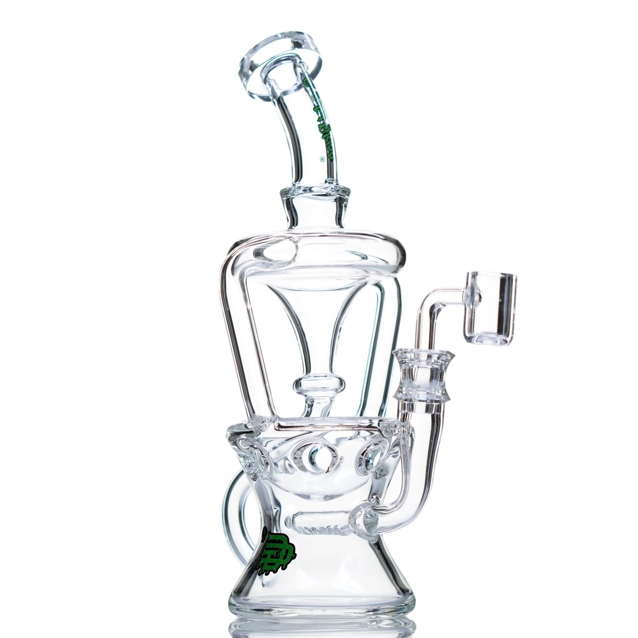 Recycler rigs are dab rigs that use two chambers to filter and cool the vapor before inhalation. They consist of an inner chamber, where the concentrate is heated and vaporized, and an outer chamber, which serves as a reservoir for water. As the vapor enters the outer chamber, it is cooled and filtered before being drawn back into the inner chamber.